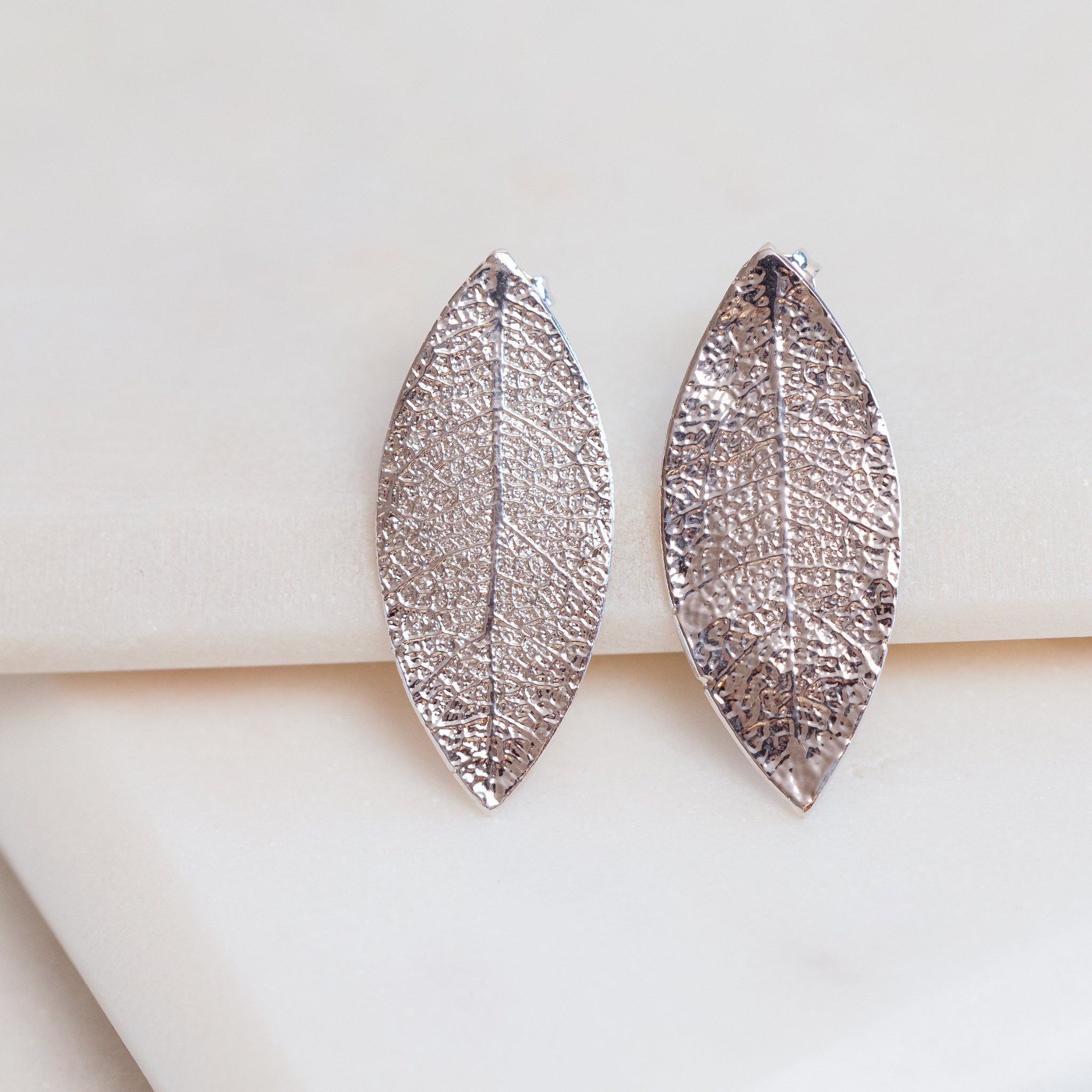 The bark of the legendary Quina tree, native to South America, contains the widely used medicinal quinine. These trees also provide the leaves used in these curvy and absolutely stunning earrings - available in 18K-gold (or silver plus rhodium). These earrings are cut to shape and with each layer of the gold (or silver)